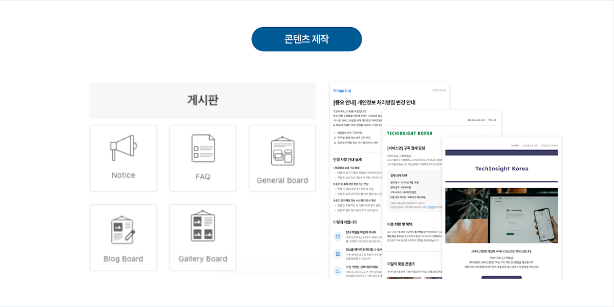 회원 관리 등 다양한 종류의 사이트 기능을 제공합니다.
