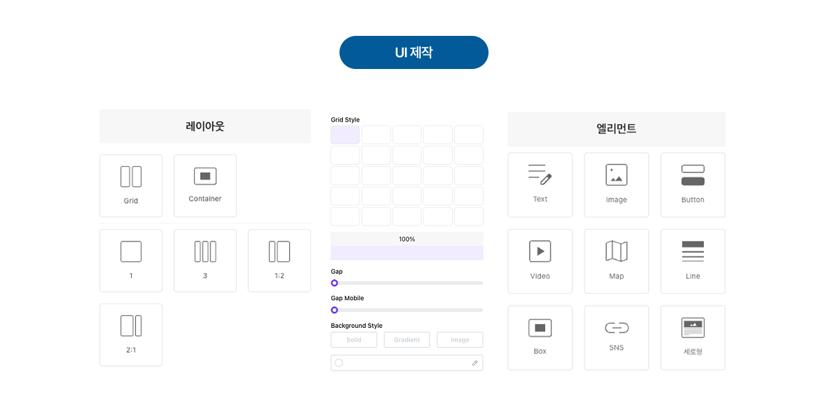 텍스트, 이미지, 동영상, 버튼 등 다양한 엘리먼트와 정적인 데이터를 이용하여 만들 수 있습니다. HTML코드로 추출이 가능하며, 복사하여 필요한 곳에 사용할 수 있습니다.